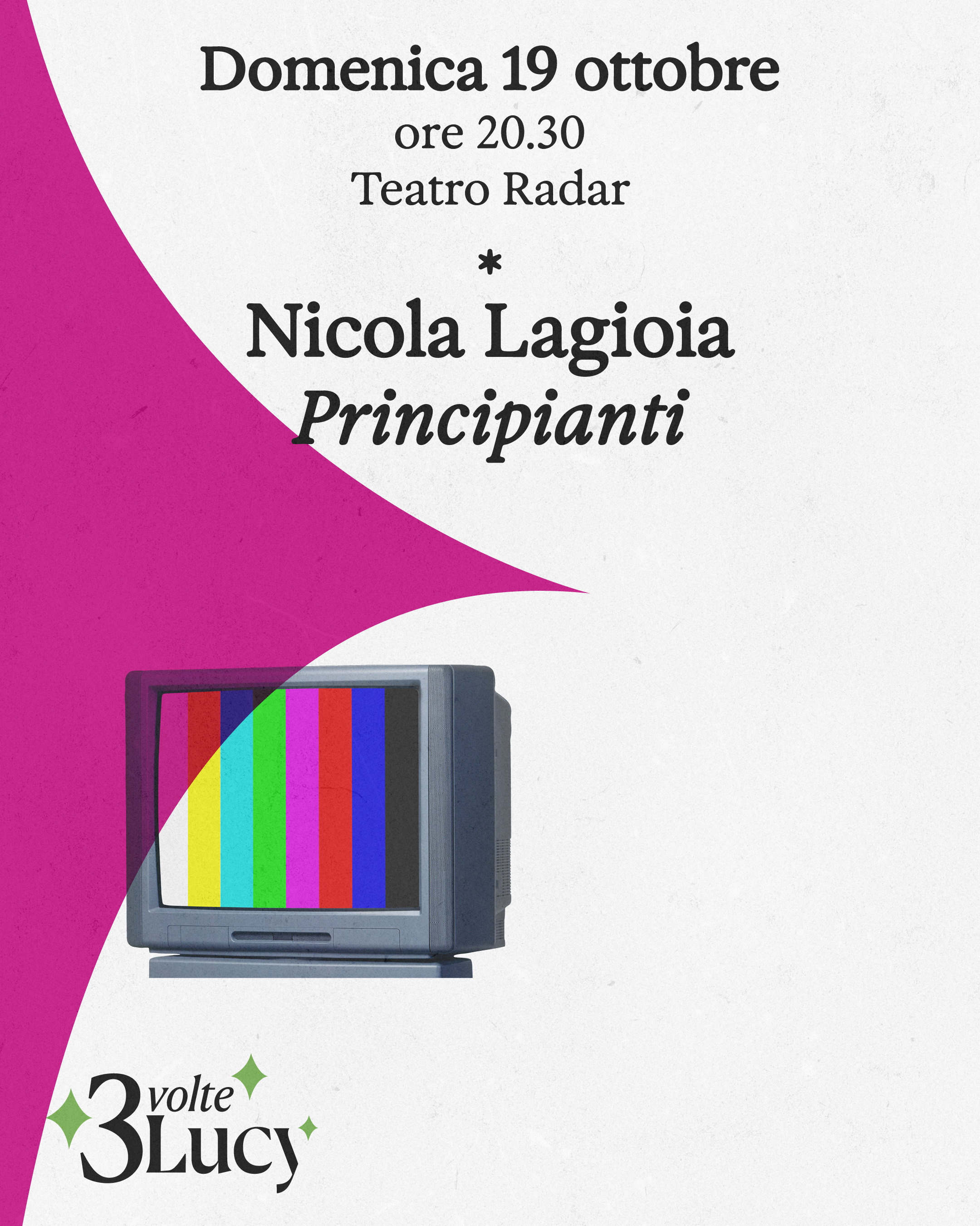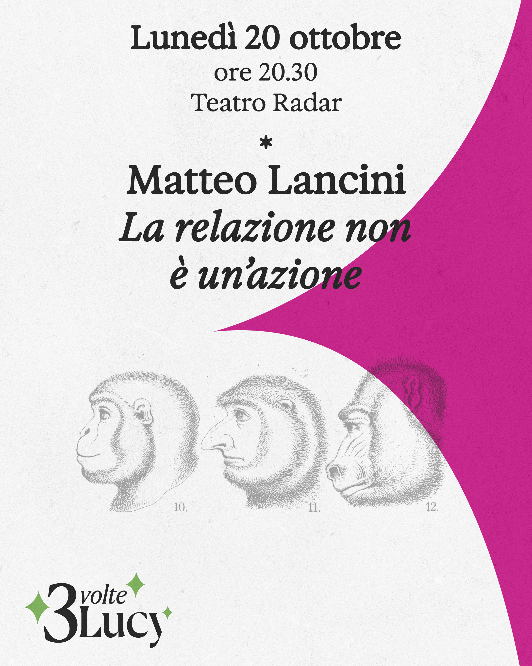 Dopo l’esordio a Rovereto, il festival 3 volte Lucy arriva a Monopoli per la sua seconda tappa, con la partecipazione e il sostegno del Comune di Monopoli e in collaborazione con la Biblioteca civica Prospero Rendella, il Teatro Radar e i Teatri di Bari. Da venerdì 17 a martedì 21 ottobre, negli spazi del Teatro Radar e della Biblioteca civica Prospero Rendella, trasformeremo la nostra rivista in un evento dal vivo grazie al contributo di amici, autrici, autori ed editori del panorama culturale italiano.