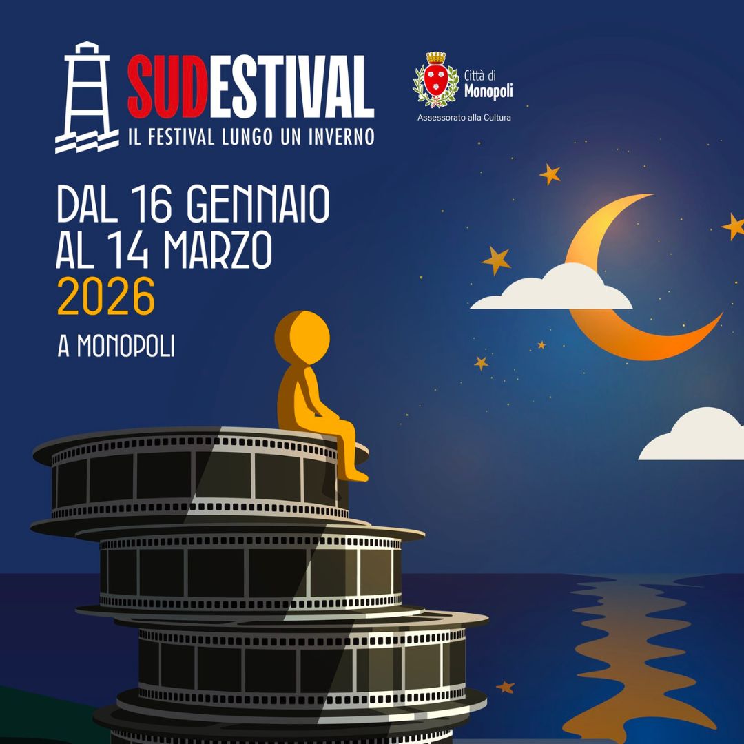 Dal 16 gennaio al 14 marzo 2026, per otto intensi fine settimana di cinema italiano, torna il Sudestival, il Festival del cinema italiano della Città di Monopoli, progetto dell’Associazione Culturale Sguardi, fondato e diretto da Michele Suma.