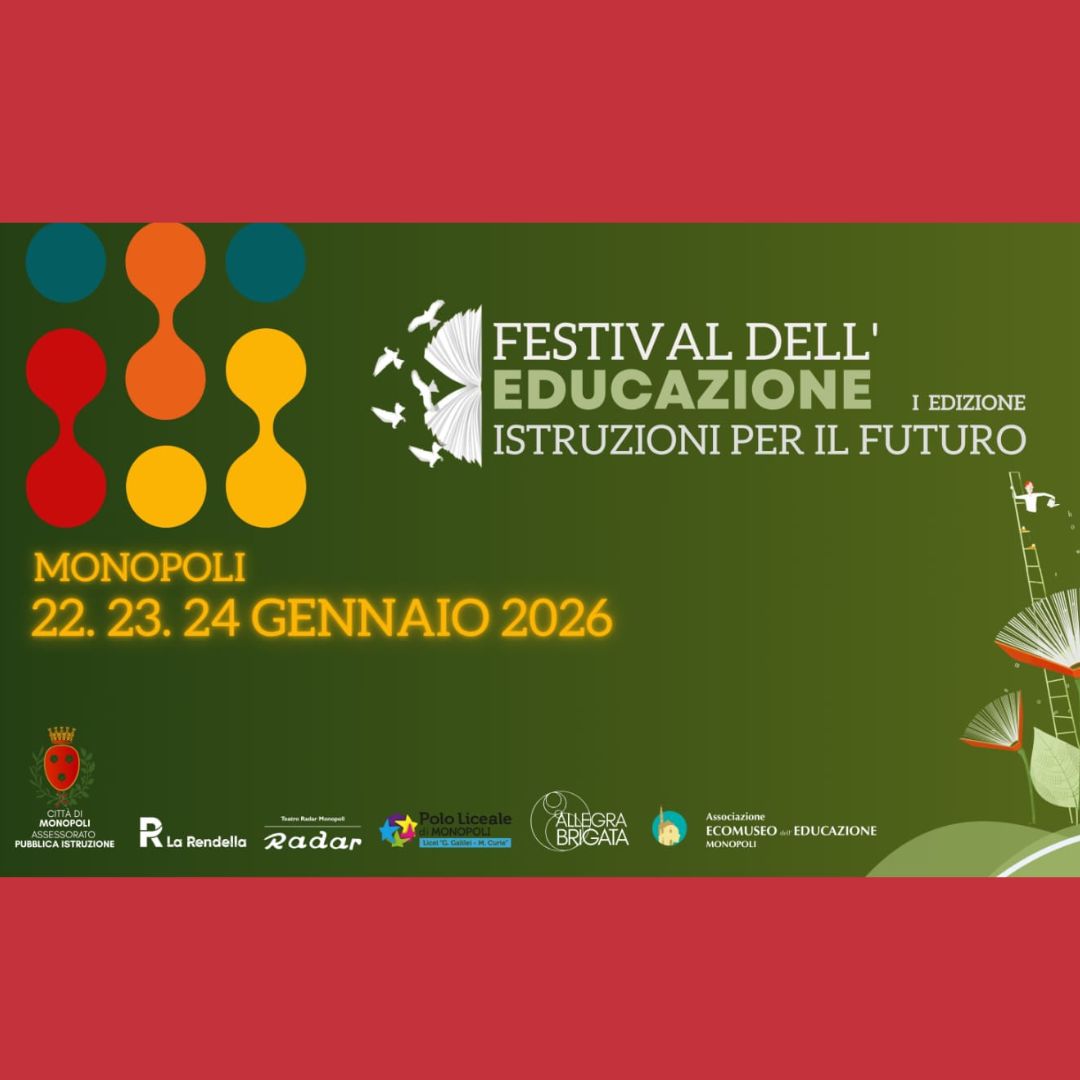 19 Gennaio 2026In occasione della Giornata Mondiale dell’Educazione, l’Assessorato alla Pubblica Istruzione del Comune di Monopoli presenta la prima edizione del Festival dell’Educazione, una rassegna…